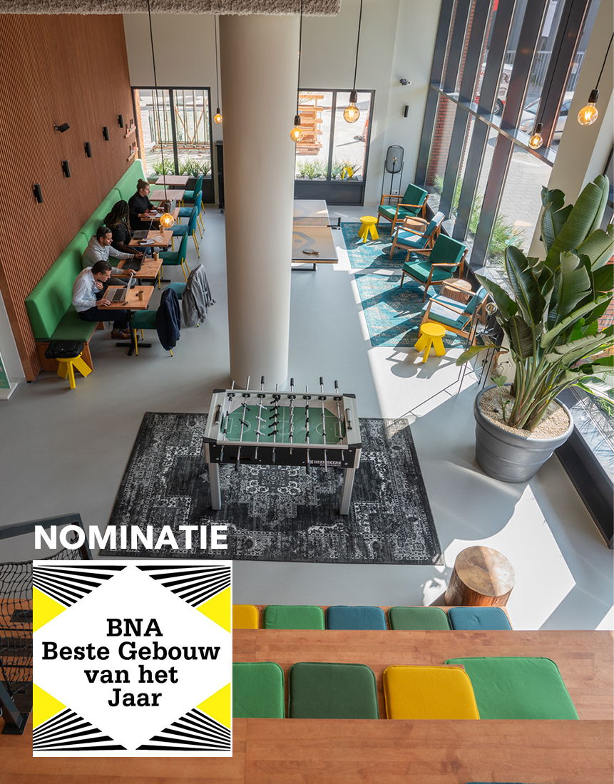 Naast het interieur was ook de bewegwijzering en de visuele identificatie van de verdiepingen en gangen onderdeel van de opdracht. Op die manier konden we het kleurige concept tot in de details uitwerken: van deurbordje tot fietsenstalling, van postbox tot tafeltennistafel.